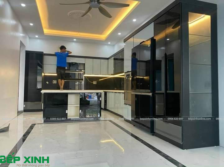 Chất liệu: Khung bếp Inox 304, cánh kính cao cấp tay CNC